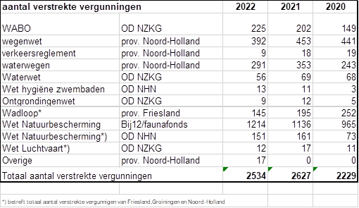 De vergunningverlening, toezicht en handhaving is opgedragen aan de Omgevingsdienst Noordzeekanaalgebied (ODNZKG), regionale uitvoeringsdienst Noord-Holland Noord (OD NHN), en is opgenomen in de lumpsum bekostiging. De door, de omgevingsdiensten gemaakte kosten voor de vergunningverlening kunnen worden doorberekend in de leges.