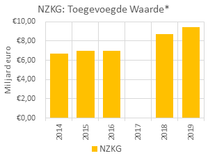 Toegevoegde waarde in Noordzeekanaalgebied (NZKG), weergeven miljarden euro’s. *deelgebied Heemskerk is in 2019 toegevoegd. In verband met een wijziging in methodiek is er geen data beschikbaar voor 2017